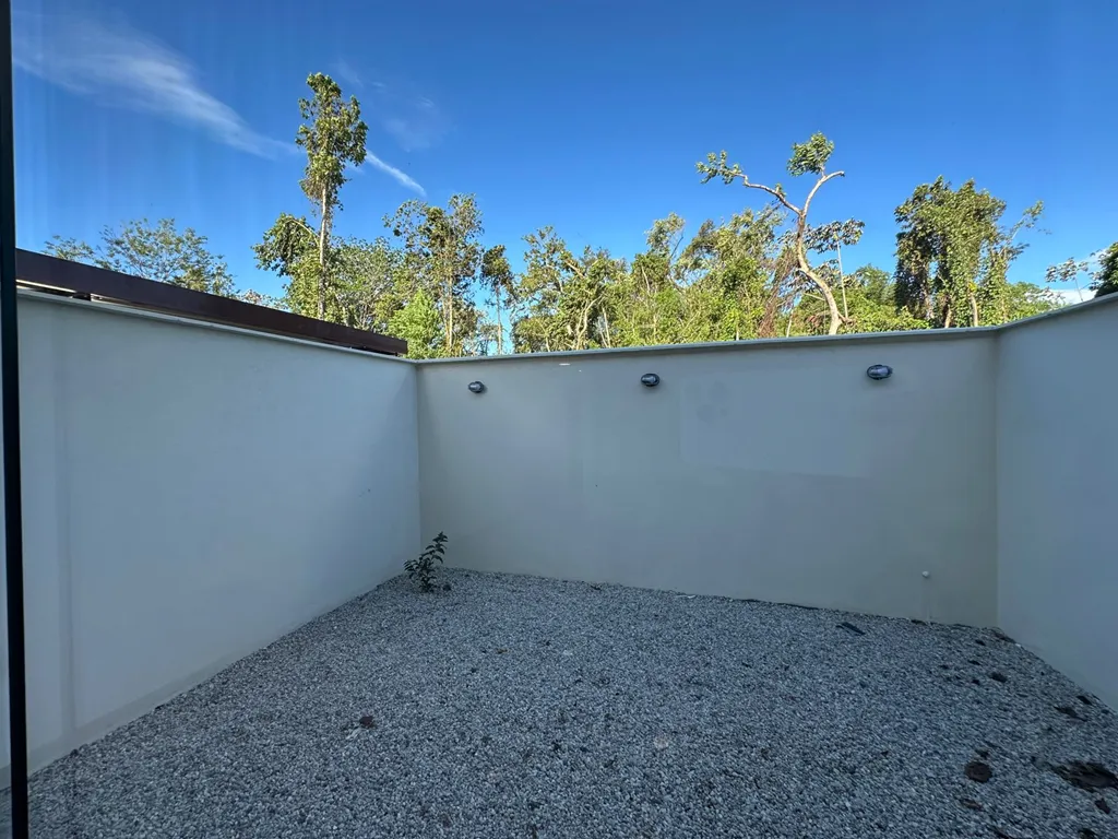 No andar térreo sala integrada com a cozinha, jardim individual, lavanderia e lavabo.